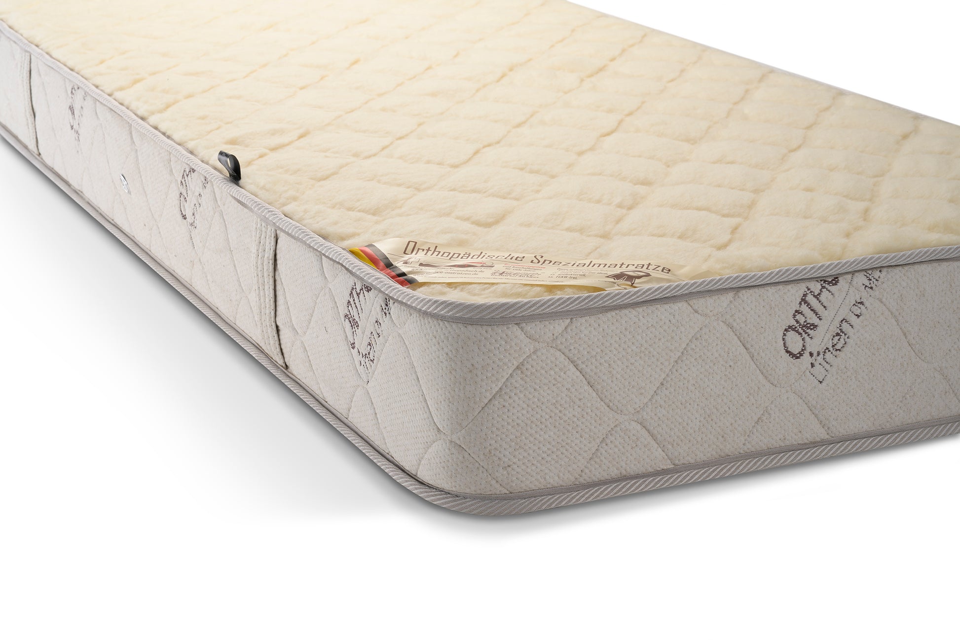 Der Bezug der Matratze ist beidseitig gefertigt – die eine Seite besteht aus natürlichem Stoff mit reinem Leinen, während die andere Seite aus 100 % Merinowolle besteht. Diese Materialien bieten nicht nur hervorragende Atmungsaktivität, sondern sorgen auch für ein angenehmes Schlafklima und sind temperaturregulierend. Merinowolle hat zudem natürliche antibakterielle Eigenschaften, die zu einem hygienischen Schlafumfeld beitragen.